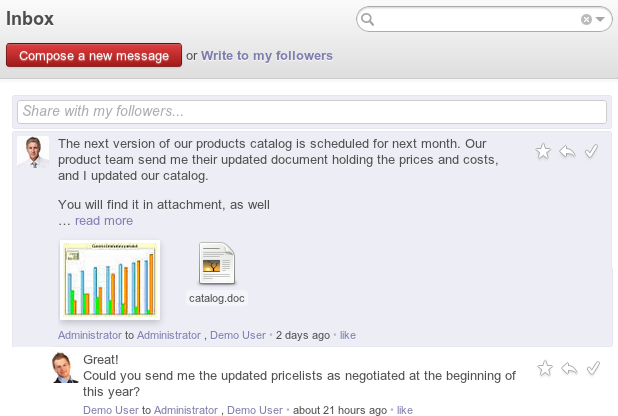 At Odoo, we build tools to bring productivity to enterprises. As emails and information flows are one of the biggest wastes of time in companies, we have to fix this.